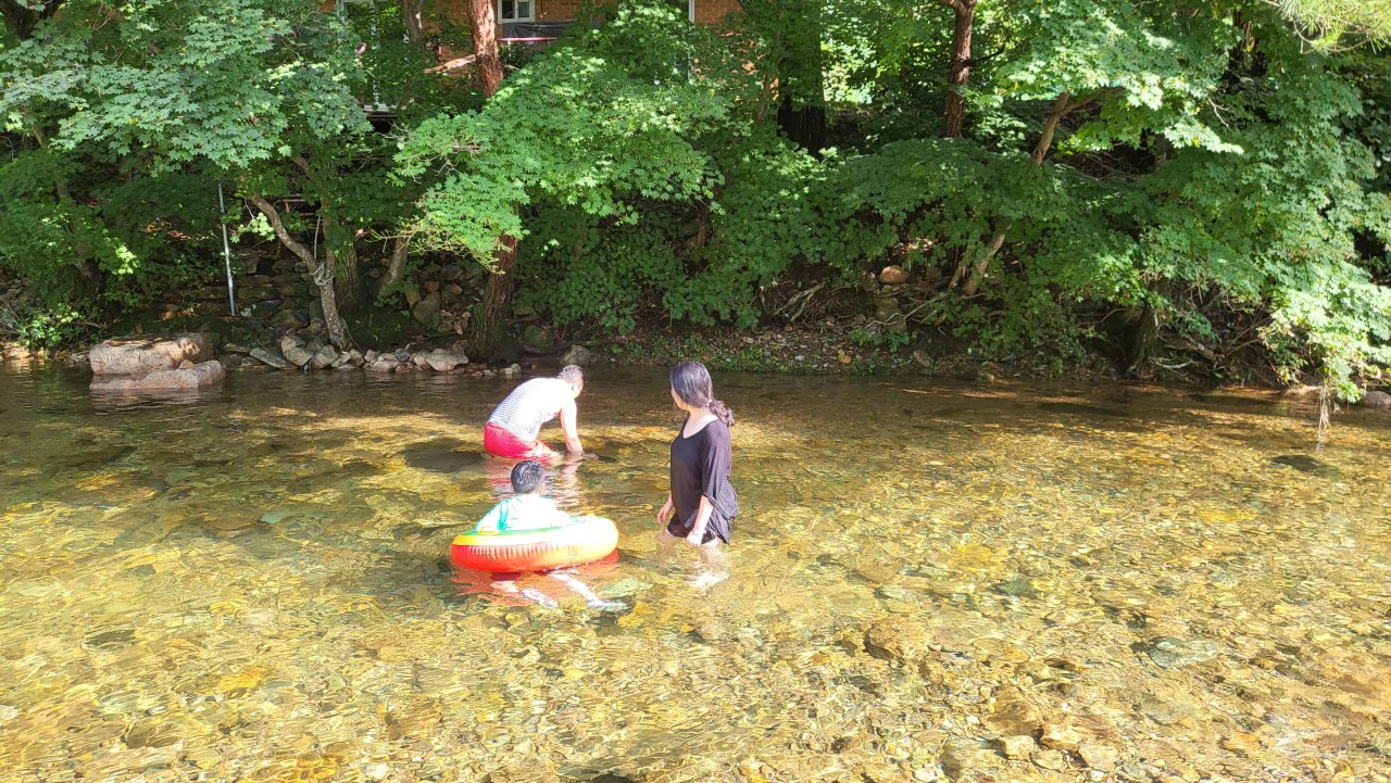 숙소 앞 계곡에서 물놀이와 자연 체험이 가능해 가족 여행에 좋다는 후기가 많습니다.